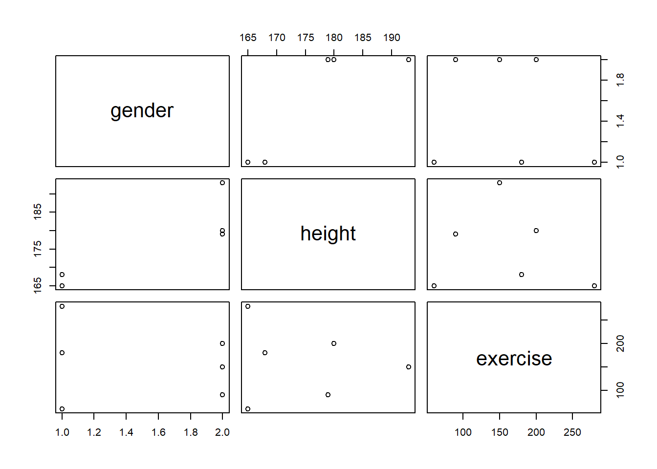 survey <- data.frame(gender, height, exercise)